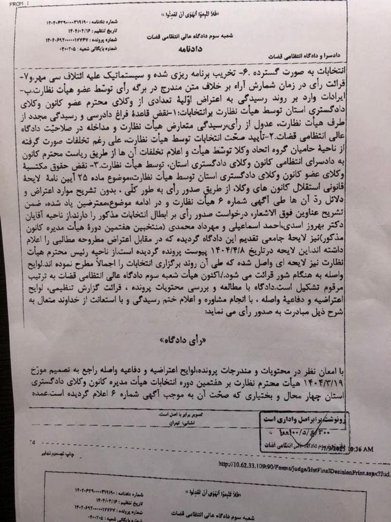 طلاعیه شماره 7 هیأت نظارت بر انتخابات هفتمین دوره هیأت مدیره کانون وکلای دادگستری چهارمحال و بختیاری 1404/04/21 161